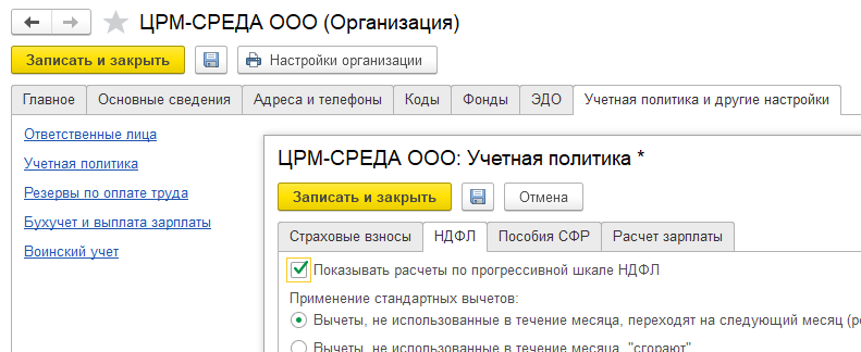 - Убедитесь, что флаг «Показать расчеты по прогрессивной шкале НДФЛ» активен.